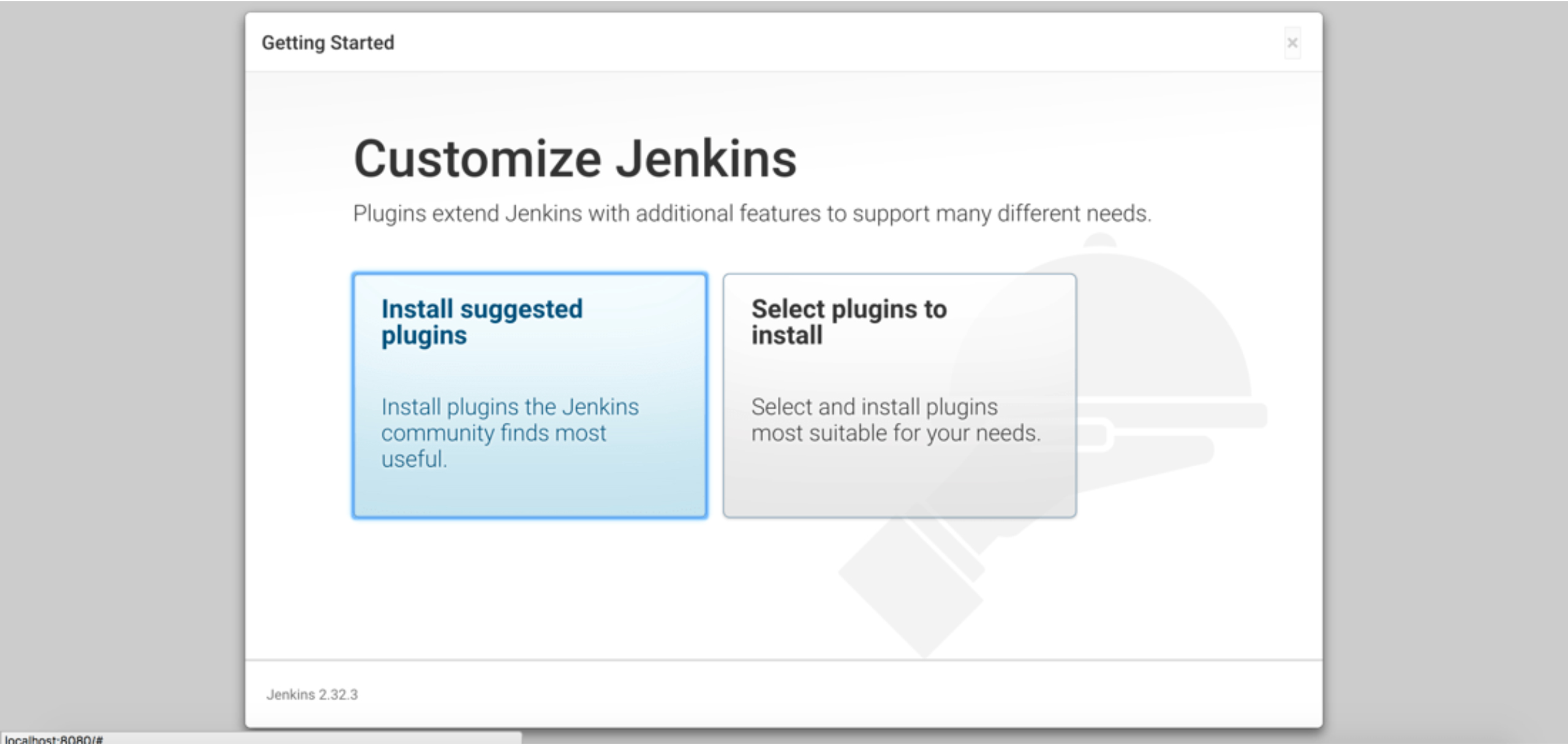 By doing this, Jenkins will be reachable via a web browser at http://localhost:8080. You’ll enter a configuration wizard on the first launch.