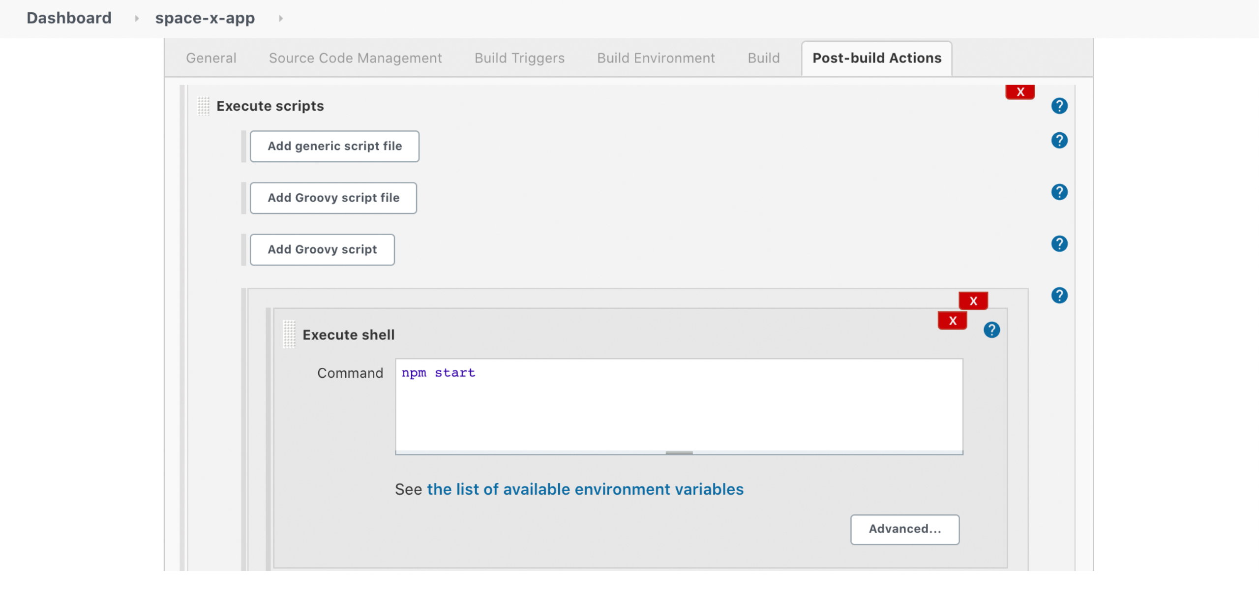 After the build step is finished, we can run shell commands or scripts thanks to this plugin. We’ll build and deploy to the same host in this example, and we may execute all shell operations locally. You might want to utilise the SSH plugin to transfer the code to a remote server in a production setting so that it can be executed there.