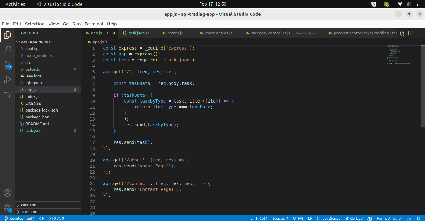 The aforementioned express app example is a simple one in which tasks are listed and filtered. The endpoint for carrying out this process is as follows.