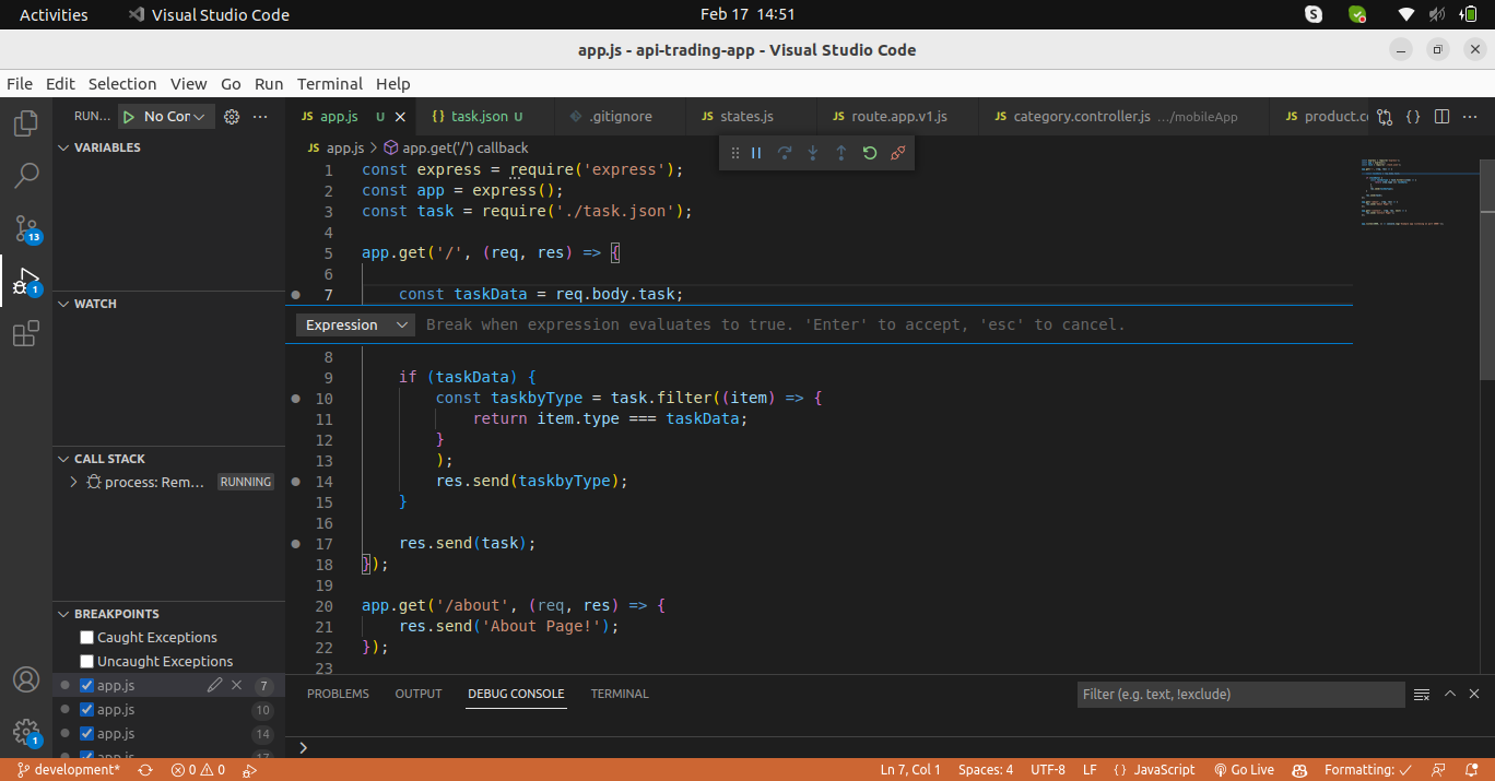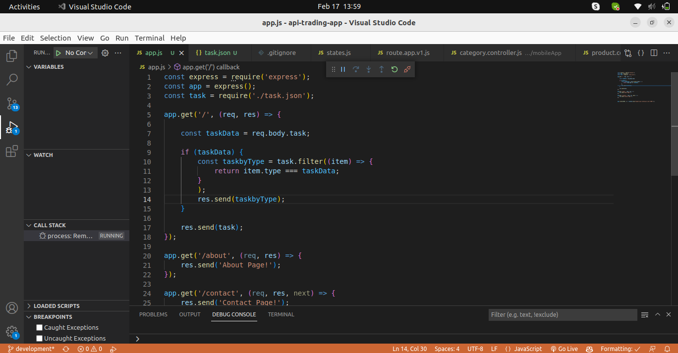 To activate the debugger, adhere to steps 2 and 3. Let’s get to the endpoint where the code will be executed after the debugger has been activated.