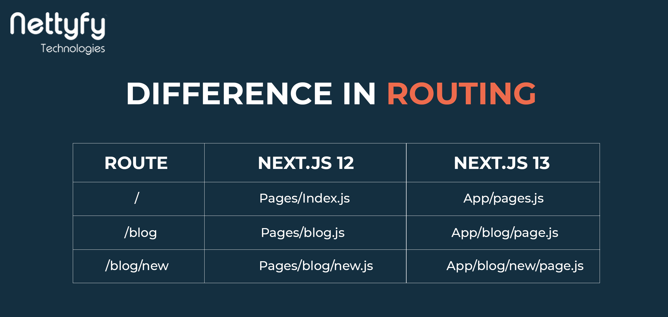 The new routing system has resulted in some minor changes to the directory structure. There is a directory and page specifically for each path in the route. The content entry point in Next is a js file. js 13. It has to do with how the new route differs from the old one.